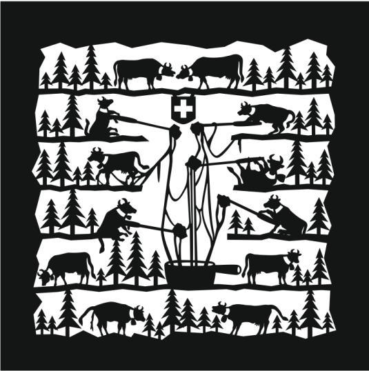 Une des vaches abandonne l’expérience fondue, collée dans le fromage elle fait demi- tour tandis que sa voisine a abusé du coup du milieu.