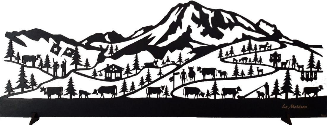 La célèbre montagne Gruérienne agrémentée de scènes typiques et représentative du folklore Suisse.