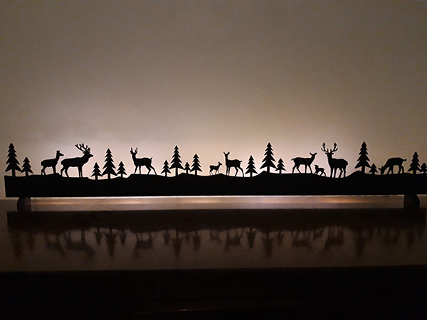 Espace prévu pour insérer un système d´éclairage par exemple boîtier à pile avec bande de leds. Se fixe au mur grâce à deux trous de passage à vis.