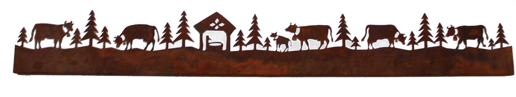 Acier Corten 1mm rouillé. Ces frises sont rouillées à l’air libre puis cirées, elles sont idéales pour une décoration intérieure.
