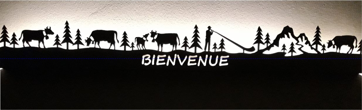 Espace prévu pour insérer un système d´éclairage par exemple boîtier à pile avec bande de leds. Se fixe au mur grâce à deux trous de passage à vis.