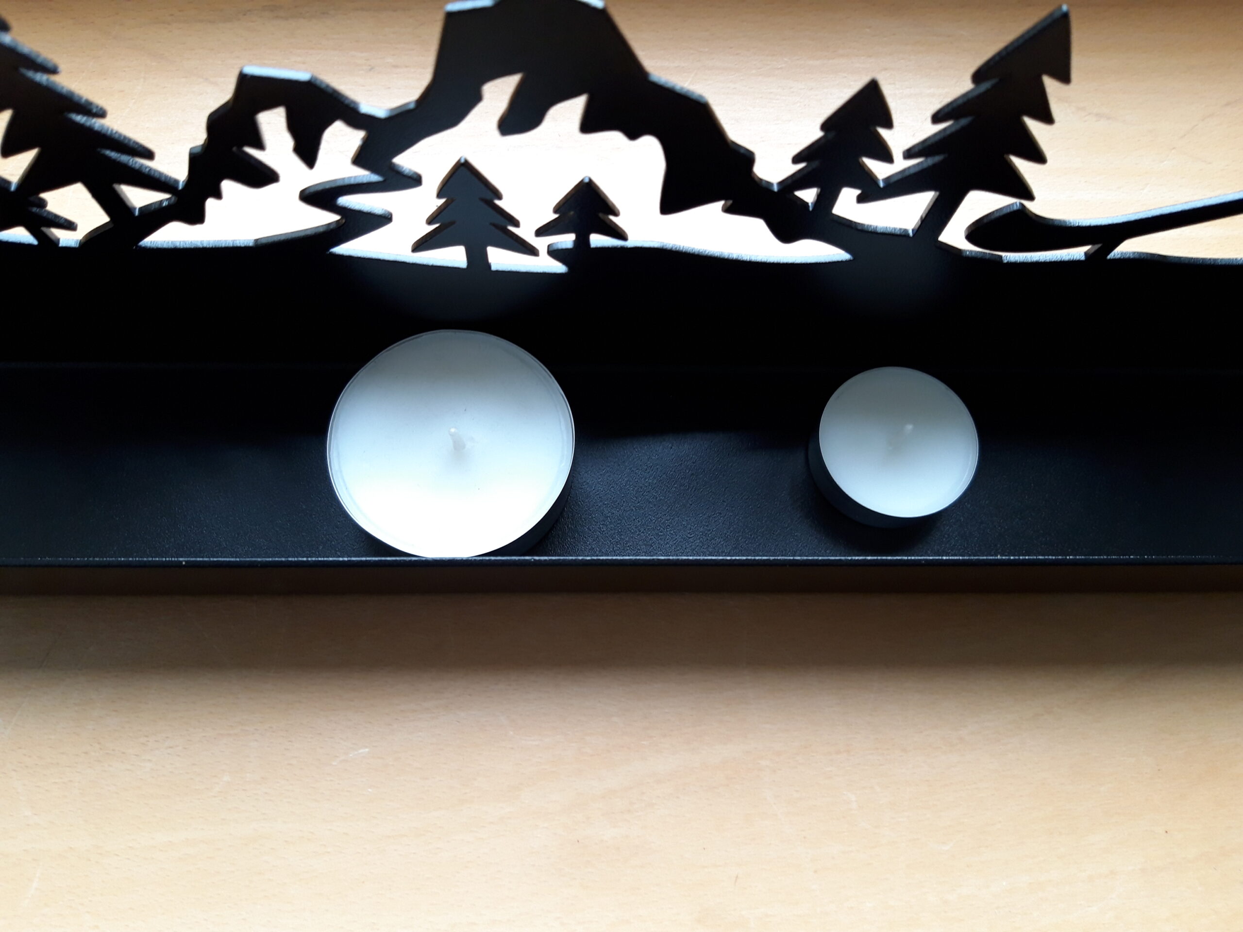 La frise peut accueillir des bougies format chauffe plat jusqu`à 6 cm de diamètre, ou être éclairée avec une guirlande leds.
