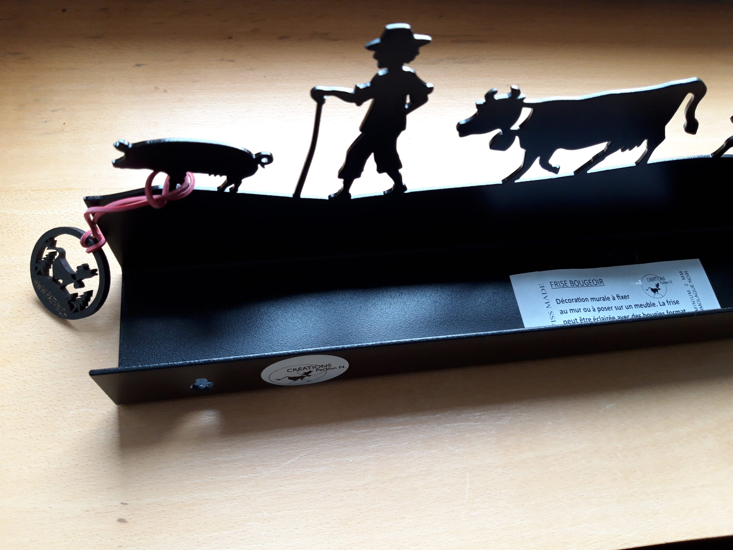 Pour un bougeoir mural, la frise poya se fixe à la paroi – 2 trous à vis au dos.