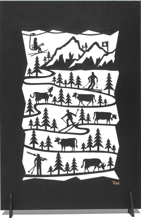 Prévue pour tenir sur ses supports, la poya peut aussi être fixée au mur, il convient alors de laisser un espace d’au moins 1 cm entre le mur et la poya, de façon à ce que les ombres ne collent pas au dessin. Il est aussi possible de suspendre la poya à l’aide de ficelle et de deux pincettes en bois. Autre possibilité, jouer sur les ombres portées ou appliquer un papier au dos de la poya et mettre une source de lumière derrière.